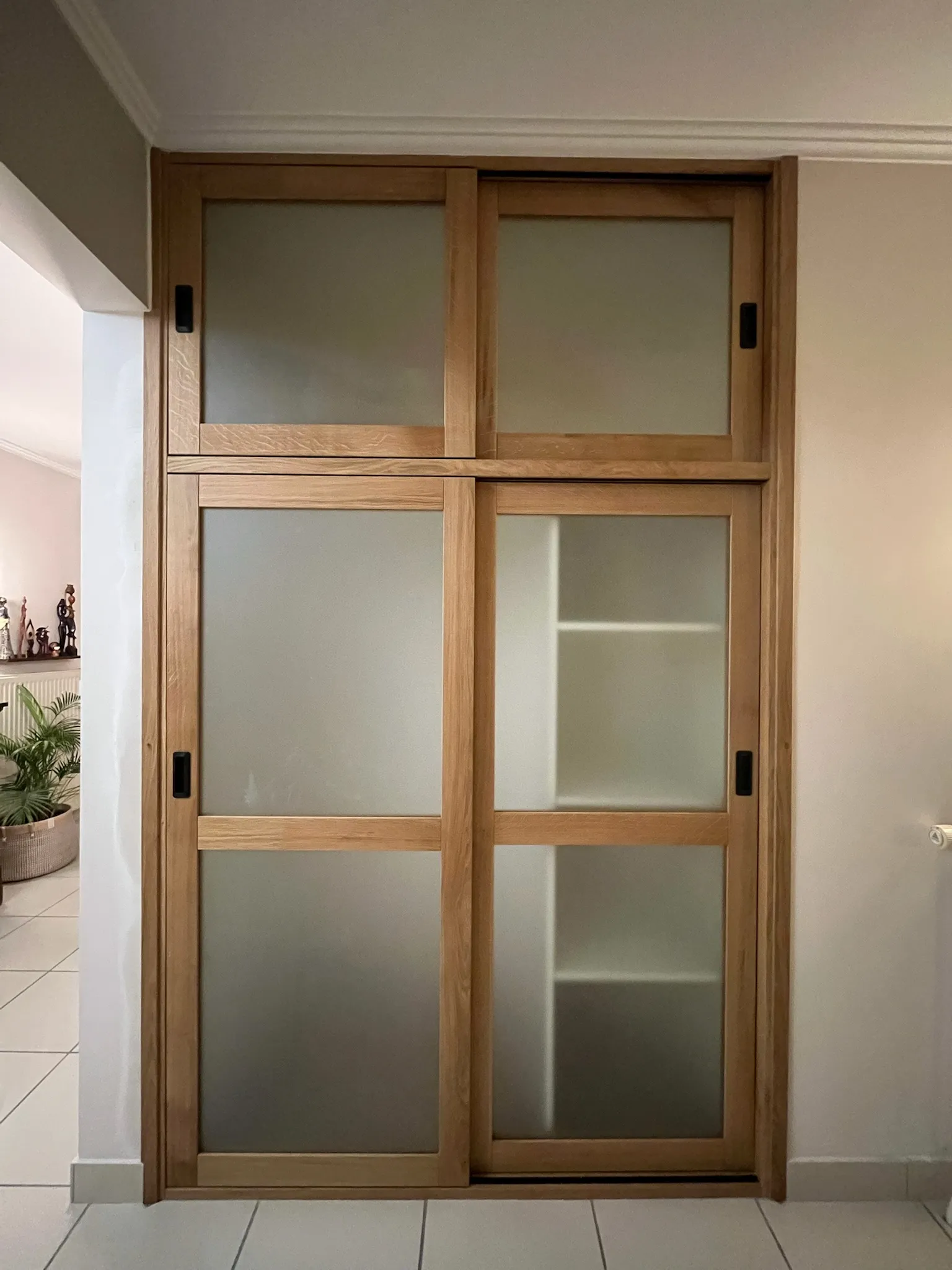 Installation sur-mesure, ajustements finaux, application des finitions. Le meuble prend vie dans son espace.